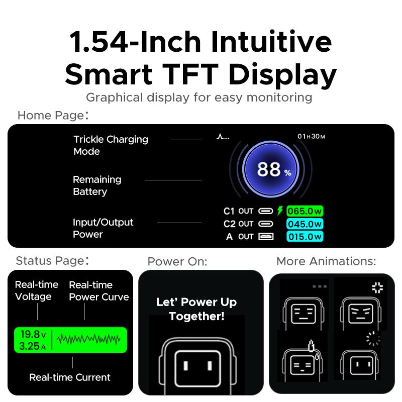 - Smart TFT Display : Real-time power, charging status, and time display.